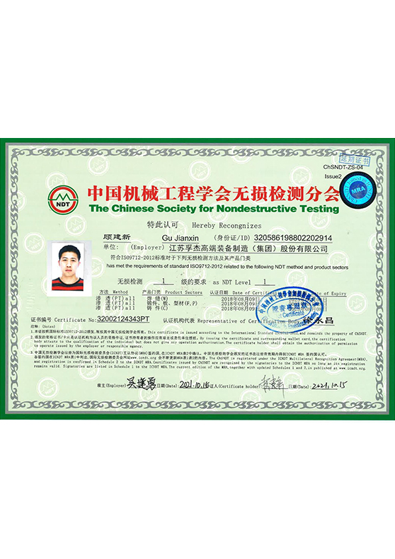 PT,UT&MT Qualified Inspector Certificate of Quality System Quality Certification API Certificate